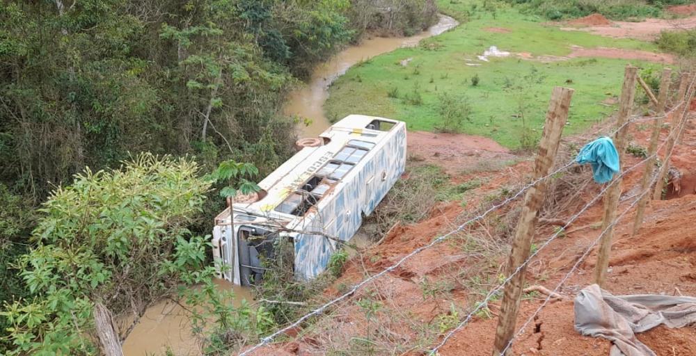 URGENTE: Ônibus escolar cai em Ribanceira nos Leandros, em Antônio Dias (MG).