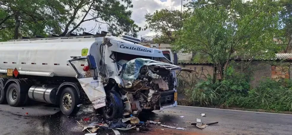 Caminhão-tanque colide com carreta e provoca vazamento de óleo no Anel Rodoviário em BH; pista sentido Vitória é interditada