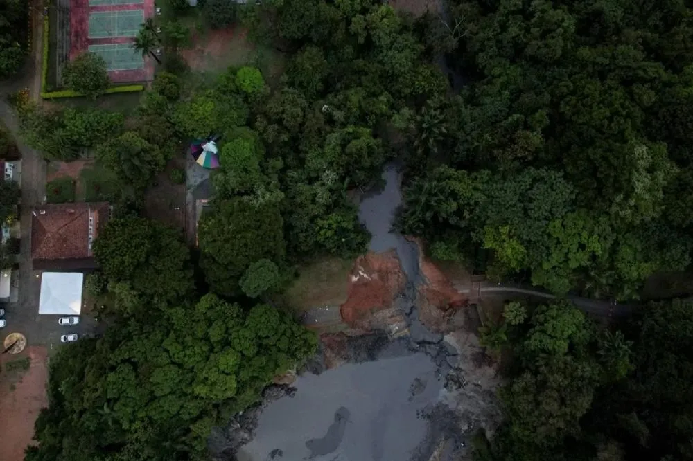 Estrutura colapsou durante chuva desta quarta-feira (13). Parte da Avenida Dom Pedro I chegou a ser interditada.