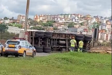 Caminhão-tanque transportando ácido sulfúrico tomba no Anel Rodoviário, em BH