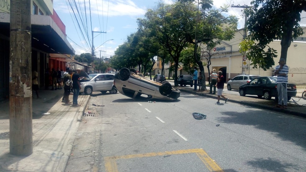 Motoristas ficam feridos após capotamento e batida entre quatro carros na Av Padre Pedro Pinto em BH