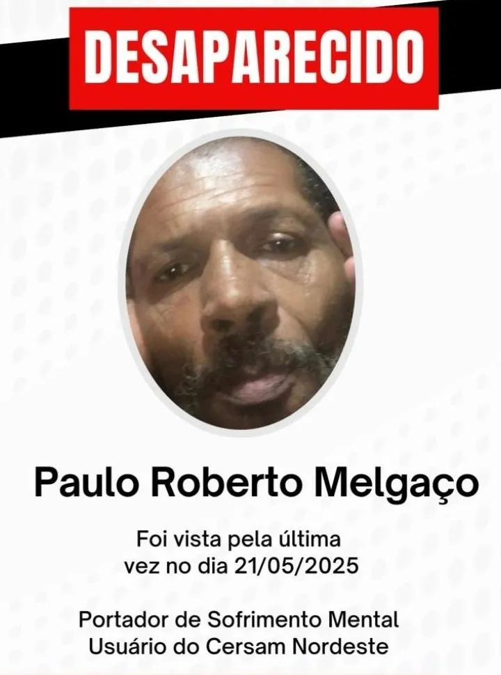 Segundo a família, Paulo Roberto Melgaço sofre de esquizofrenia e saiu de casa levando apenas documentos e pequena quantia em dinheiro.