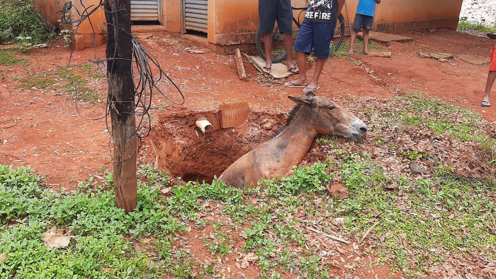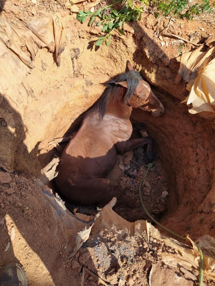 Bombeiros salvam égua que caiu em fossa na zona rural de Bocaiúva