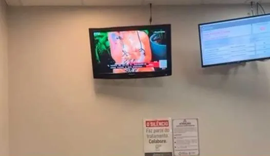 Cena inusitada ganhou as redes sociais na segunda-feira (28), em Patos de Minas. Em nota, o Hospital Imaculada Conceição informou que investiga as causas do incidente envolvendo o sistema de exibição de TV.