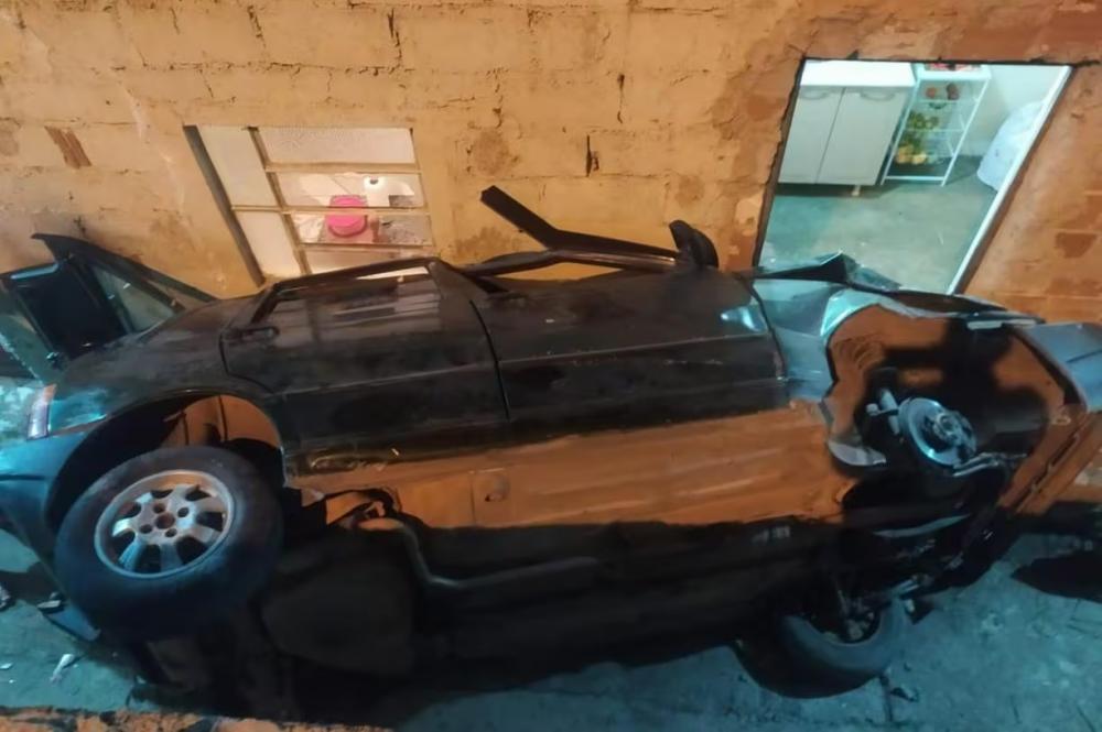 Carro cai de um barranco de 7 metros ao capotar e invade casa, em Caeté