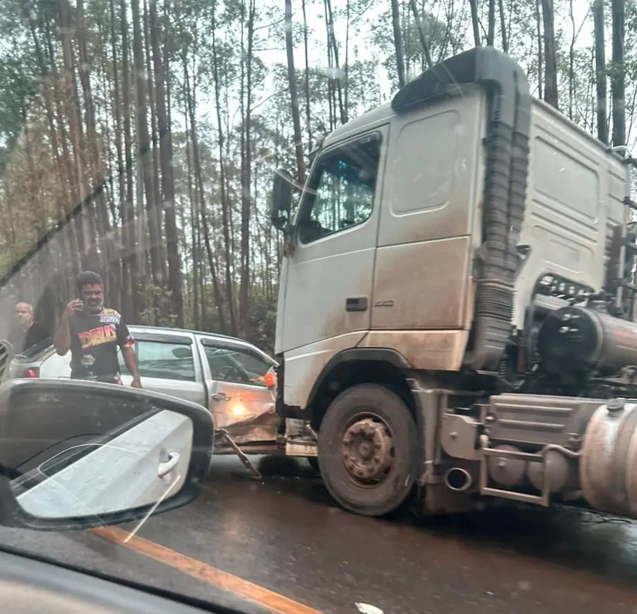 Colisão entre carro e carreta na MG-435, em Caeté