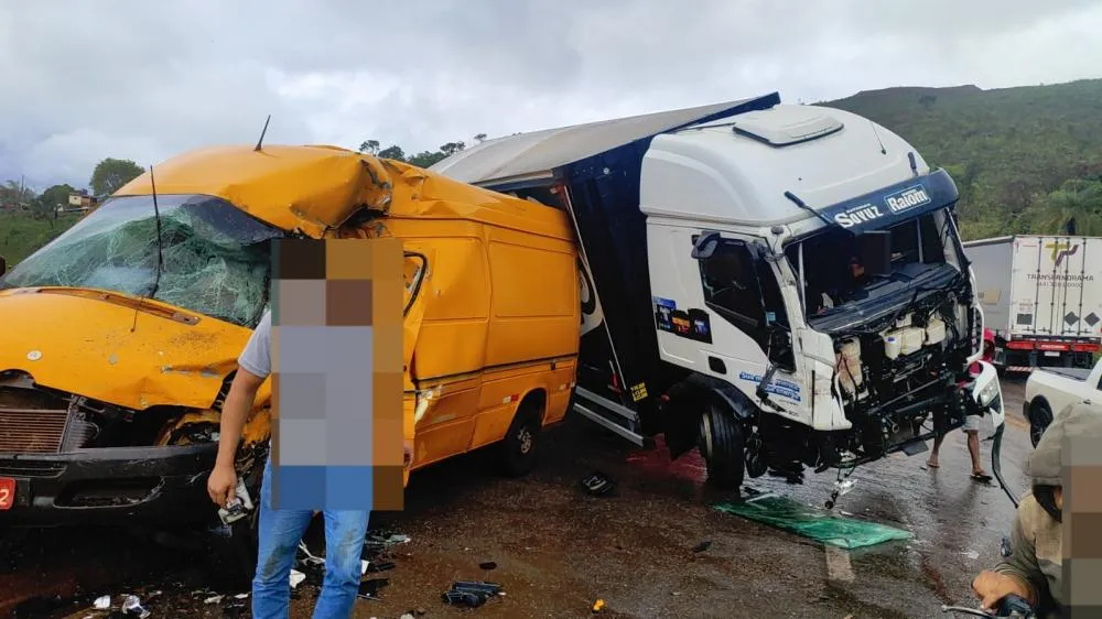 Ocorrência envolveu três veículos: uma van e dois caminhões