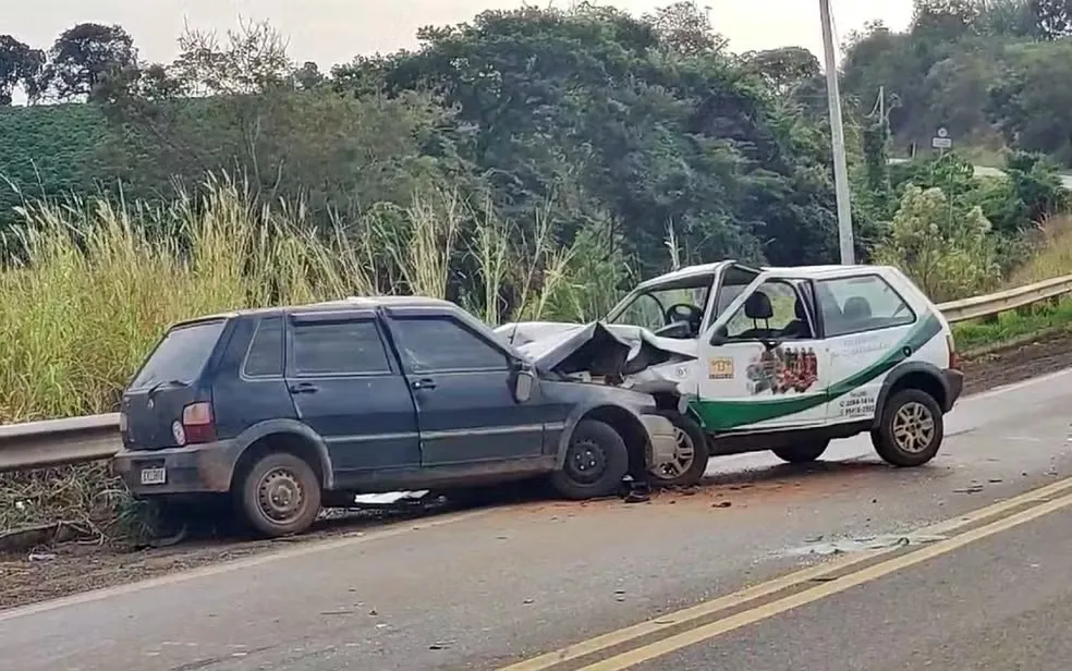 Batida de frente entre dois carros mata passageiro na MGC-267, em Campestre, MG