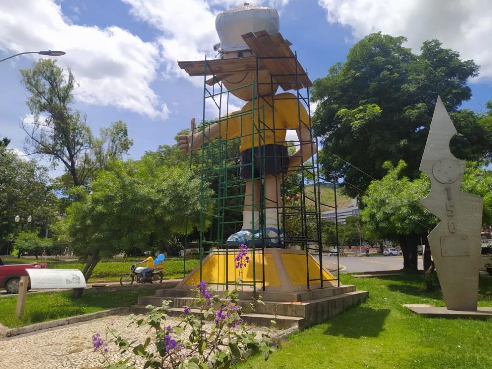 Artistas plásticos dão início à obra de restauração do Menino Maluquinho de Caratinga