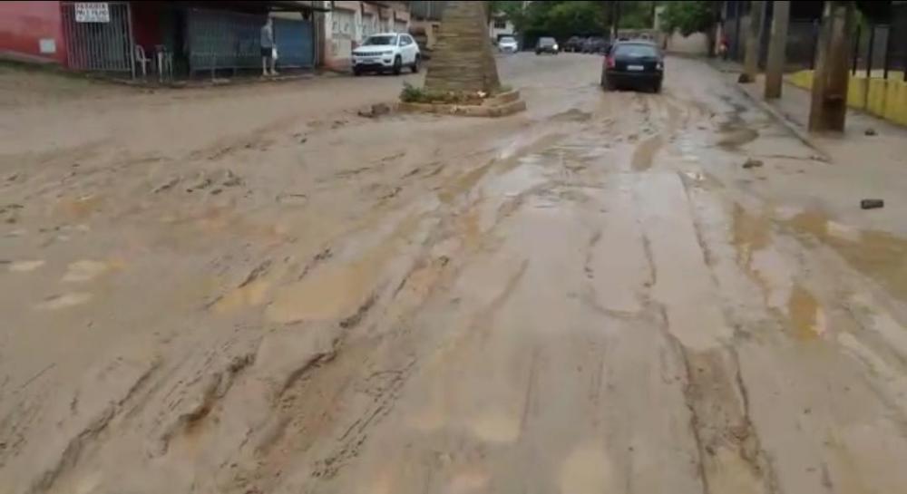 Enxurrada não escoa e moradora de Santa Maria de Itabira faz vídeo registrando a situação