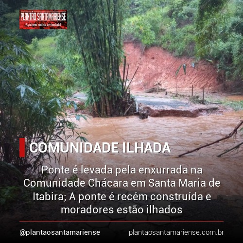 Ponte é levada pela enxurrada na Comunidade Chácara em Santa Maria de Itabira; A ponte é recém construída e moradores estão ilhados