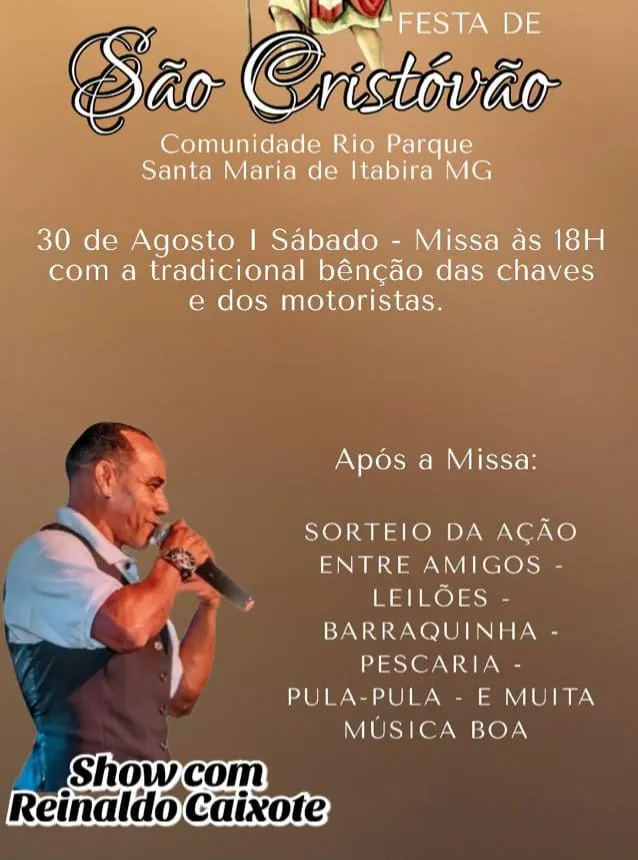 Comunidade Rio Parque realiza Festa de São Cristóvão dia 30 de agosto em Santa Maria de Itabira