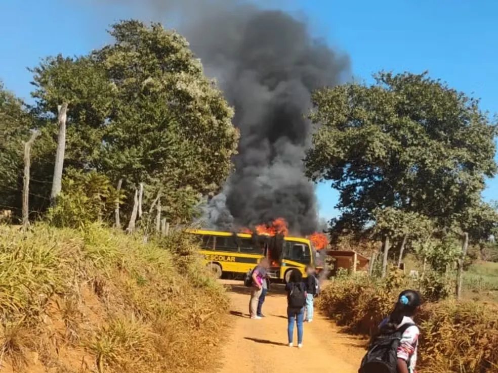 Ônibus escolar pega fogo na zona rural de Onça de Pitangui; ninguém se feriu