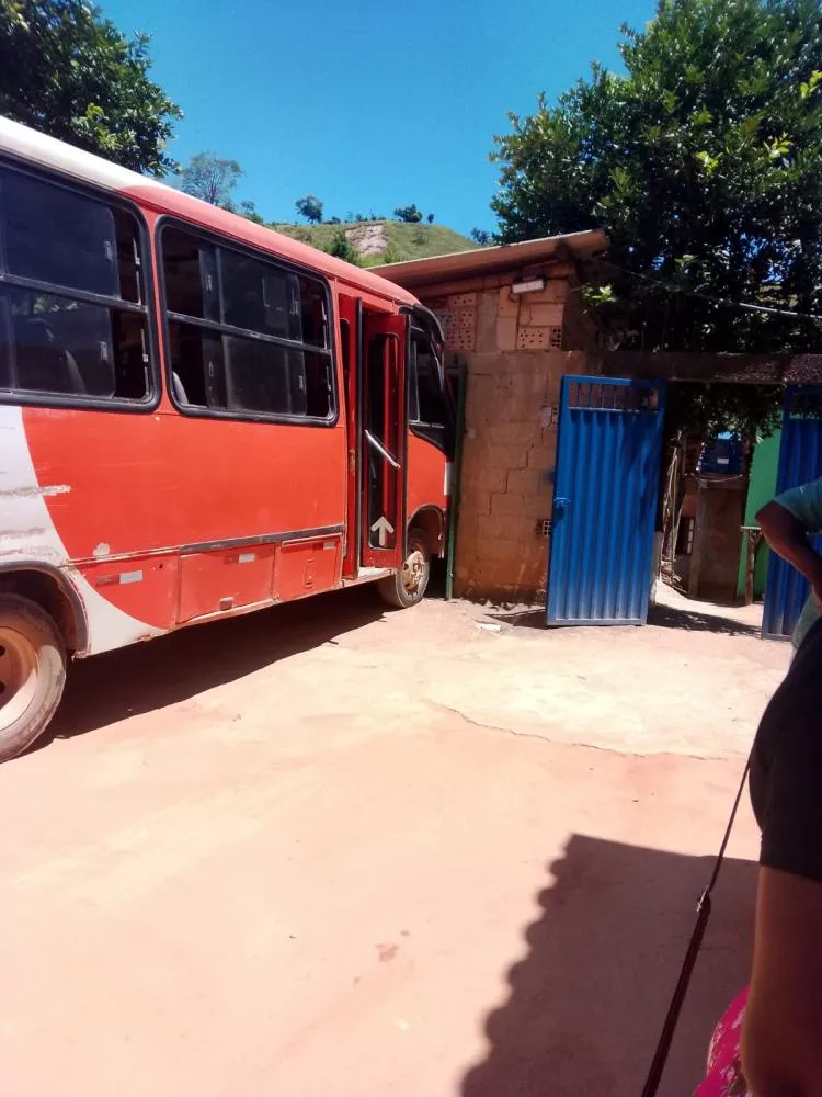Micro-ônibus que faz a linha Barro Preto x Santa Maria de Itabira atinge portão de residência. Ninguem se feriu