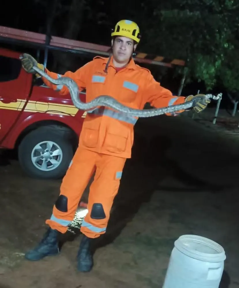 Serpente media aproximadamente 1 metro e 50 centímetros de comprimento. Ela foi localizada no quintal da casa do morador.