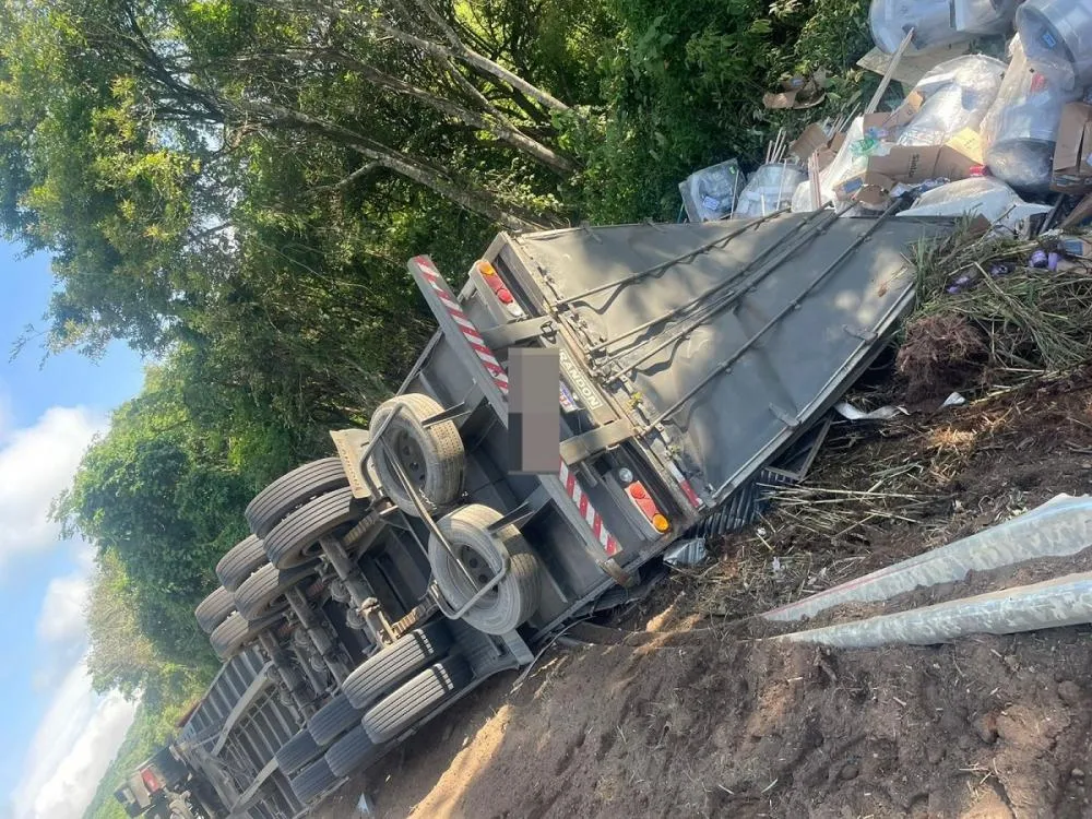 Caminhoneiro morre após tombamento de carreta na BR-494, em Minas