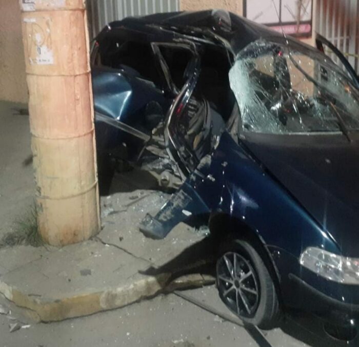 Vítimas estavam em um carro que bateu em um poste na noite de sábado (4).