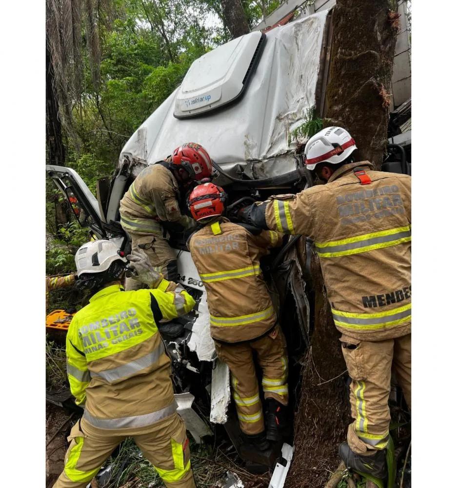 Direção trava, e caminhão cai em barranco em Confins