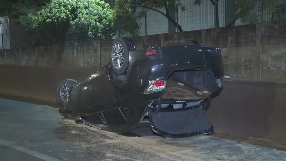 Foragido da Justiça é preso depois de ser perseguido pela polícia e capotar carro em Contagem