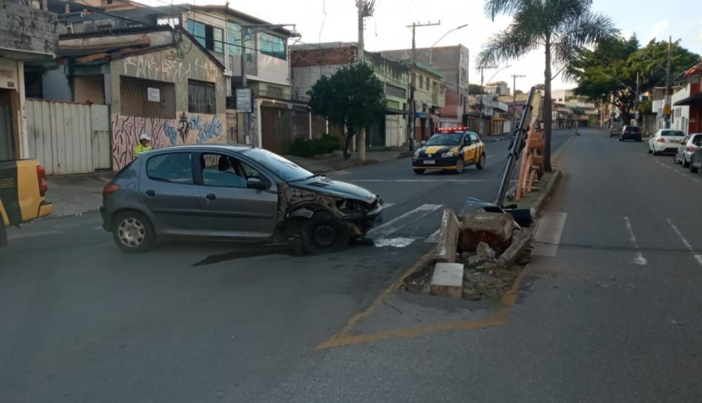 Motorista bate carro em semáforo e foge a pé do local, em Contagem (MG)