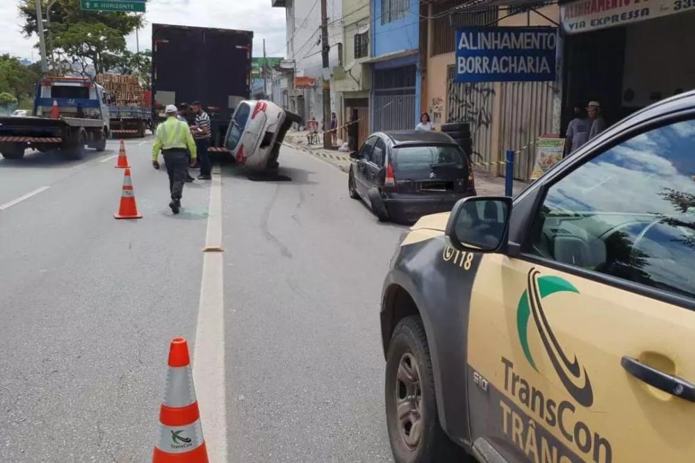 Acidente entre carro e caminhão deixa trânsito lento na Via Expressa de Contagem