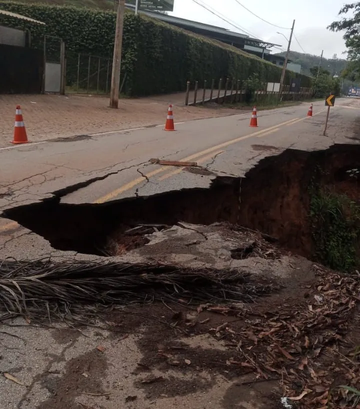 MG-123: Estrada entre Dom Silvério e Alvinópolis bloqueada por Queda de Asfalto