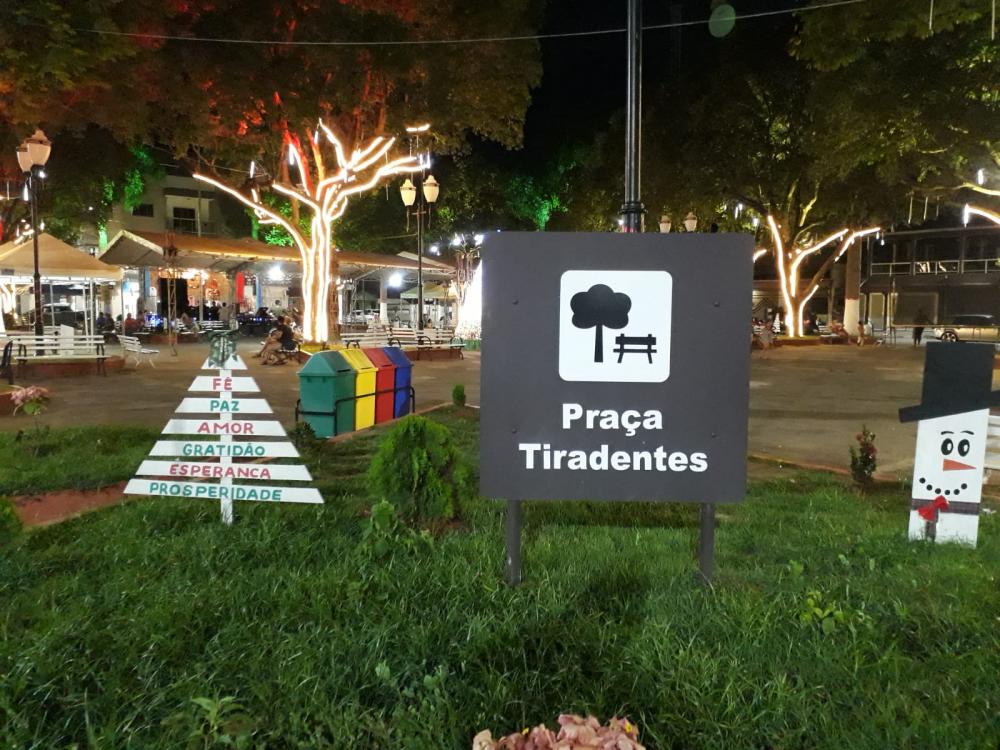 Praça Tiradentes em Engenheiro Caldas (MG) está no Clima do Natal