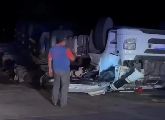 Capotamento de caminhão mata motorista e trava o trânsito na BR-040, em São Gonçalo do Abaeté