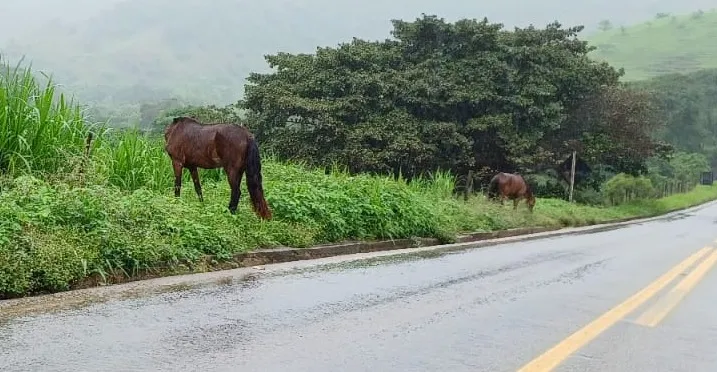 Apesar de não estarem diretamente na rodovia, os equinos podem representar riscos caso se movimentem inesperadamente.
