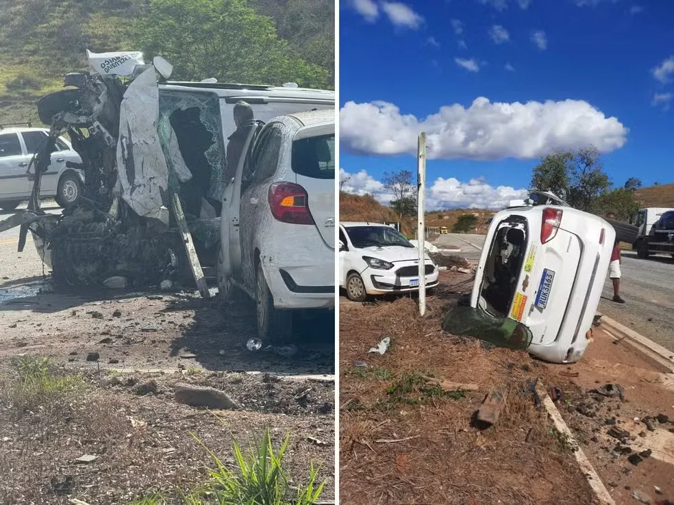 Acidente entre três carros deixa dois mortos e quatro feridos na BR-116, em MG