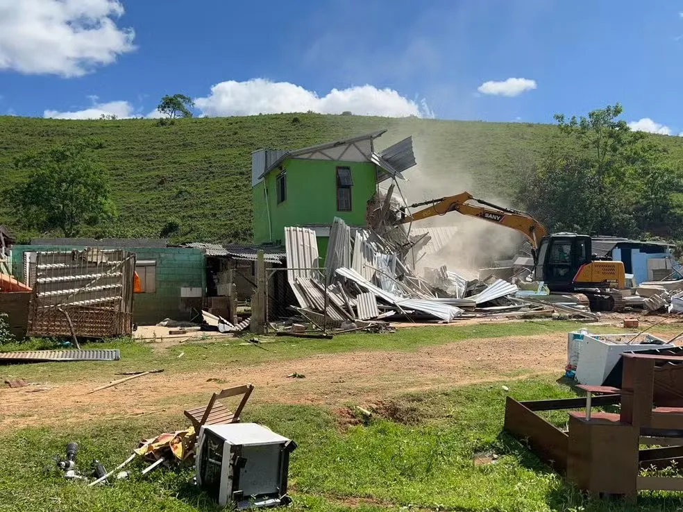 Segundo a Justiça, as construções estavam em área de preservação permanente e de propriedade do Governo federal, em Ewbank da Câmara. Ação contou com força policial.