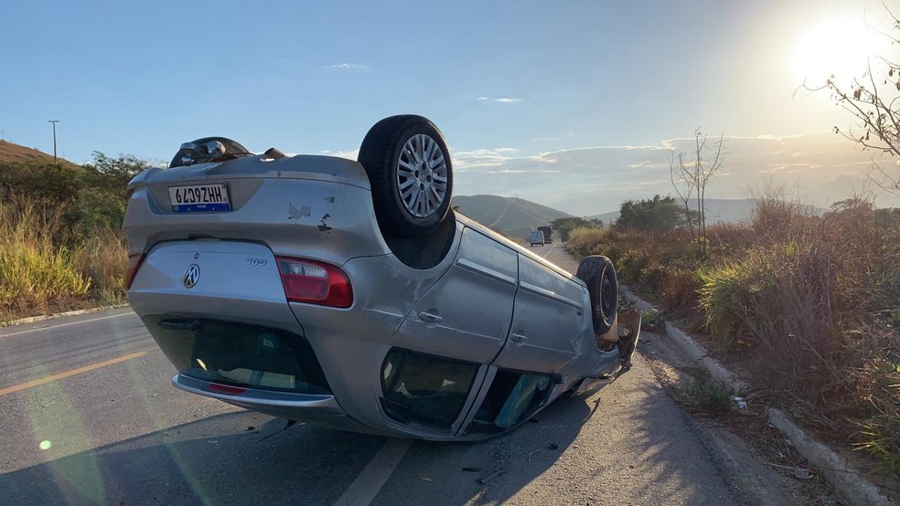 Motorista fica ferida após carro capotar na BR-381, em GV