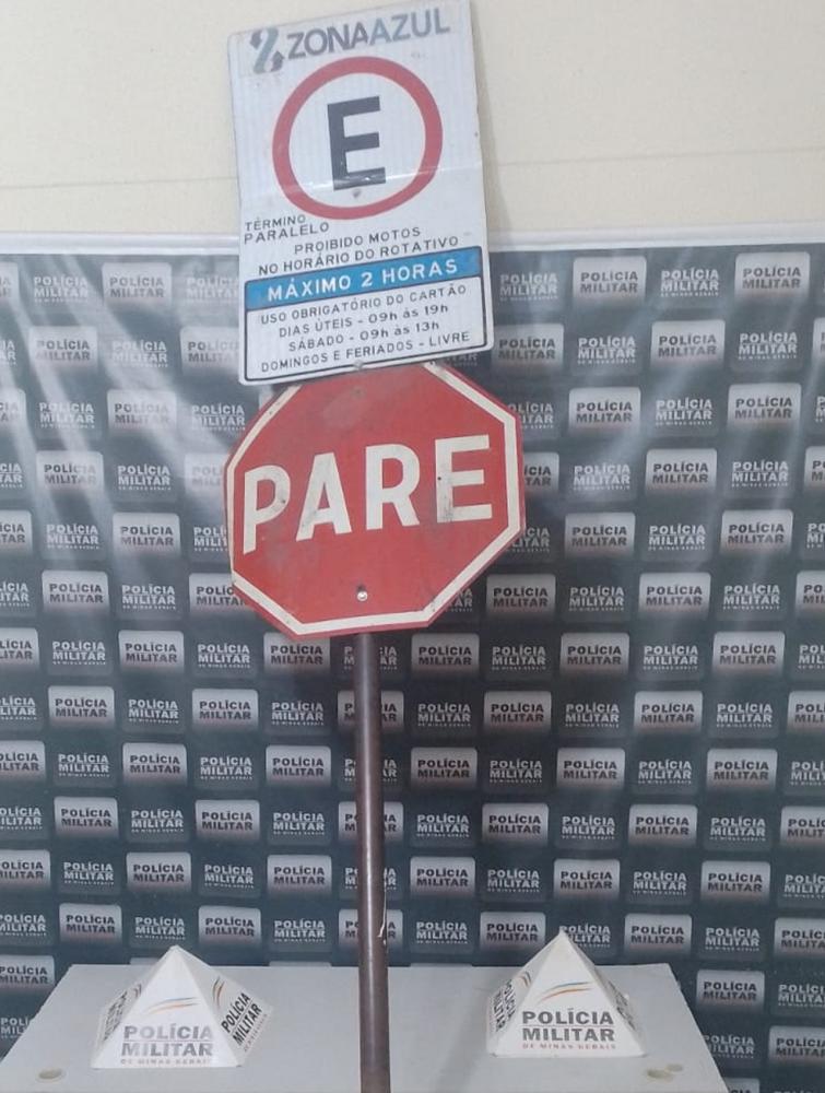 Homem furta placa de trânsito e diz à polícia que iria vender para comprar comida