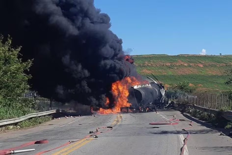Acidente entre carretas gera explosão e deixa motorista carbonizado na BR-381