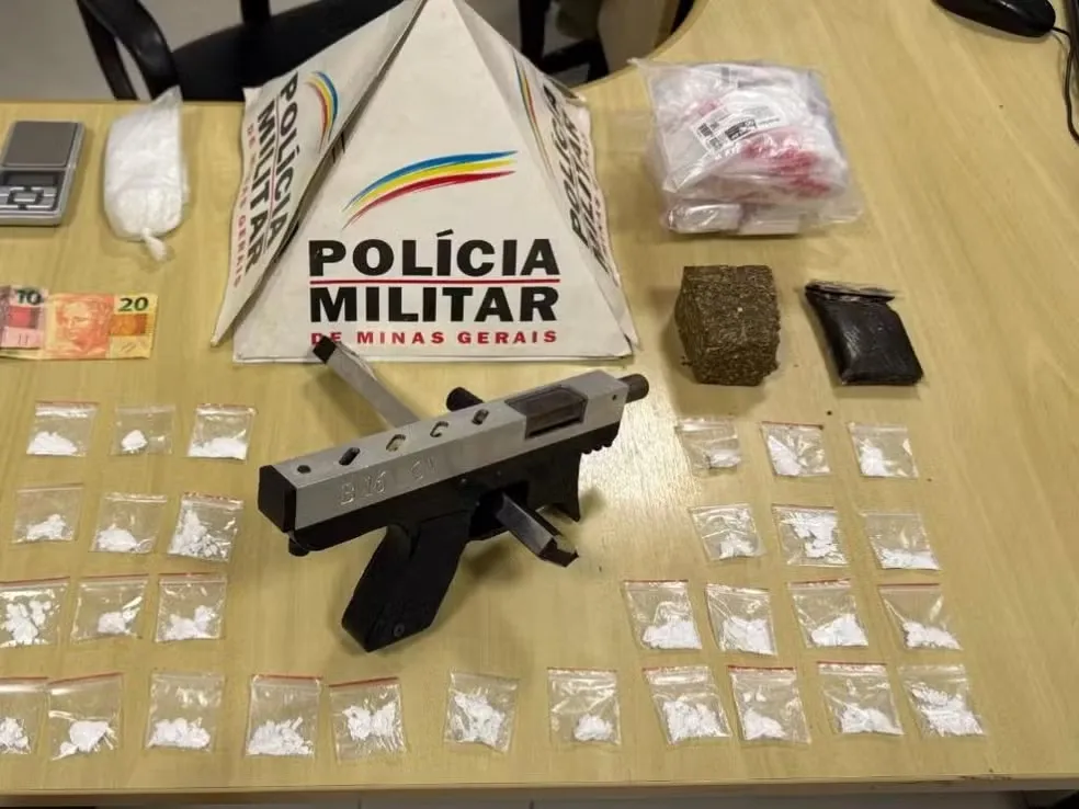 Segundo a Polícia Militar, os militares receberam denúncias anônimas que apontaram que o suspeito estaria escondendo drogas e uma arma em um lote próximo a casa dele. A partir das informações, os policiais se deslocaram até o endereço indicado e encontraram uma submetralhadora calibre .380 sem numeração, um carregador, além de maconha, cocaína e haxixe.