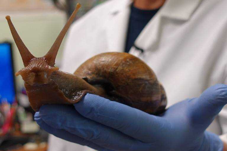 O molusco, considerado um dos mais prejudiciais do mundo, afeta os bairros Caminho Novo, Major Lage de Baixo, Jardim dos Ipês e Gabiroba. Agentes irão de porta em porta orientar e recolher as conchas dos moluscos apreendidas pelos moradores.