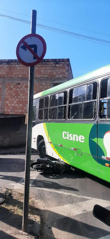 Ônibus na contramão atinge motociclista no Bairro Água Fresca, em Itabira.