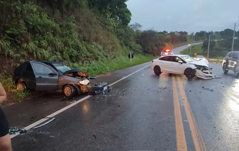 Batida frontal entre dois carros deixa três pessoas feridas na MG-050, em Itaúna