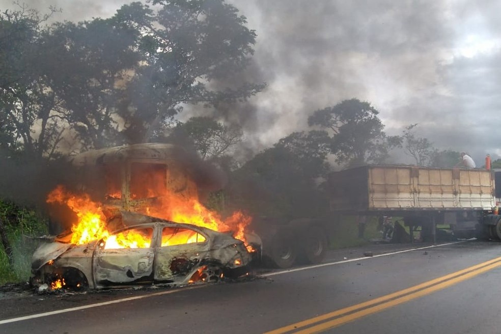 Três pessoas da mesma família morrem após carro bater com carreta na BR-040 em João Pinheiro