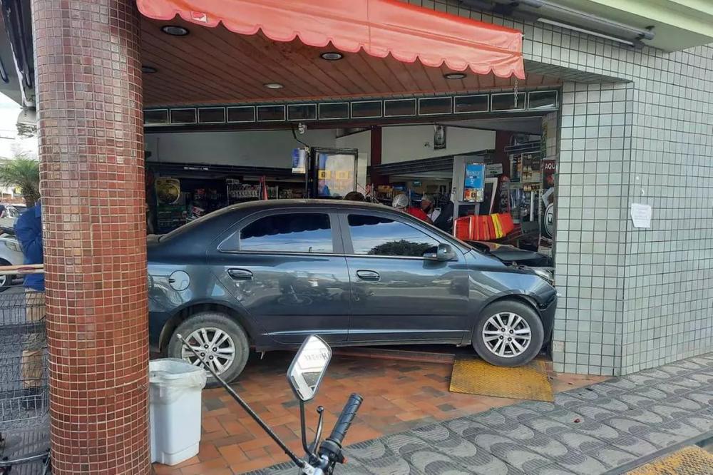 Mulher engata marcha errada e carro invade padaria em Lagoa Santa