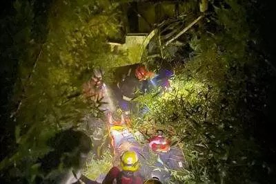 Ônibus com 52 pessoas cai em ribanceira na BR-116 em Leopoldina (MG)
