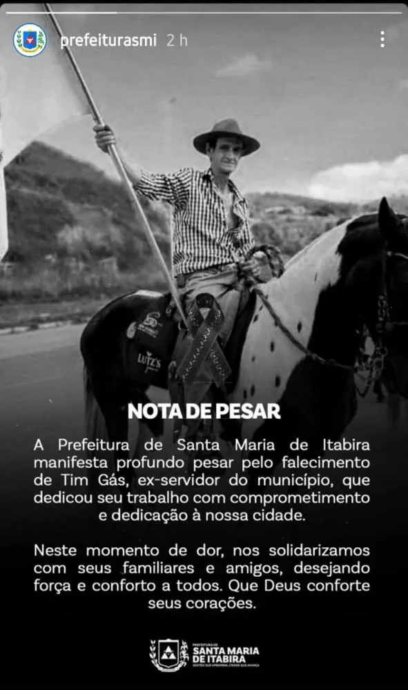 A informação foi divulgada pela Prefeitura de Santa Maria de Itabira