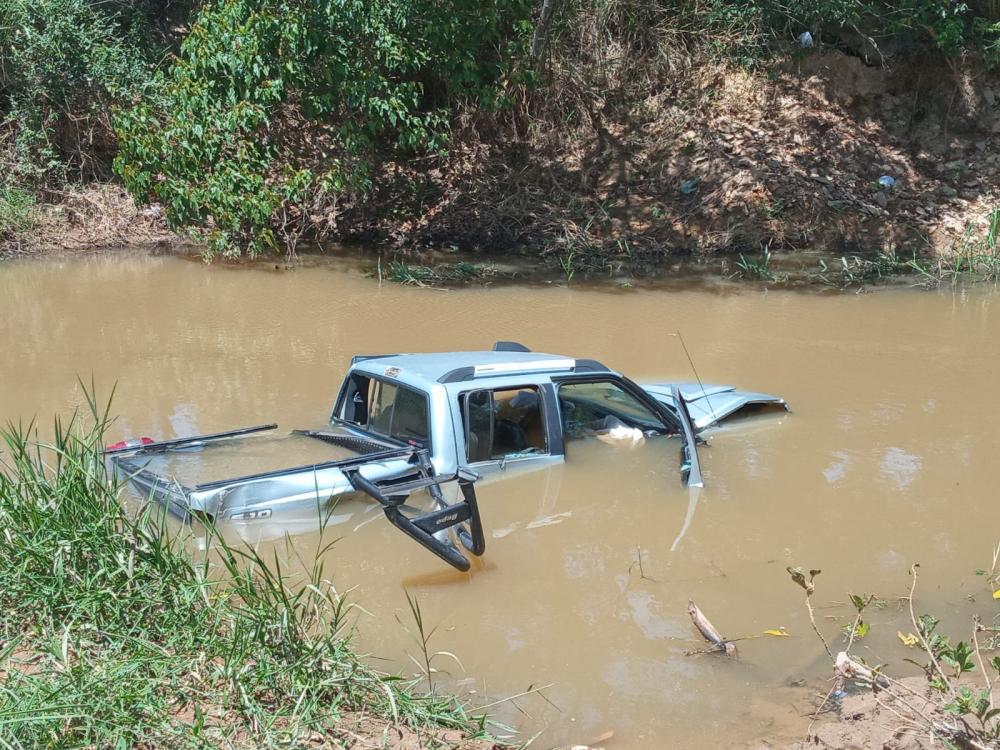 Dois homens ficam feridos após caminhonete cair dentro de ribeirão, em Marliéria