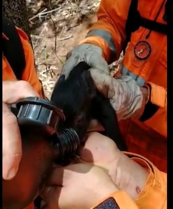 Uma equipe de apoio do 12º BBM encontrou um javaporco totalmente desidratado no meio da região de combate às chamas.