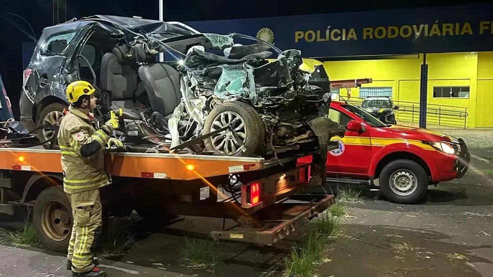 Família morre após carro bater em carreta estacionada na BR-365 em Monte Alegre de Minas