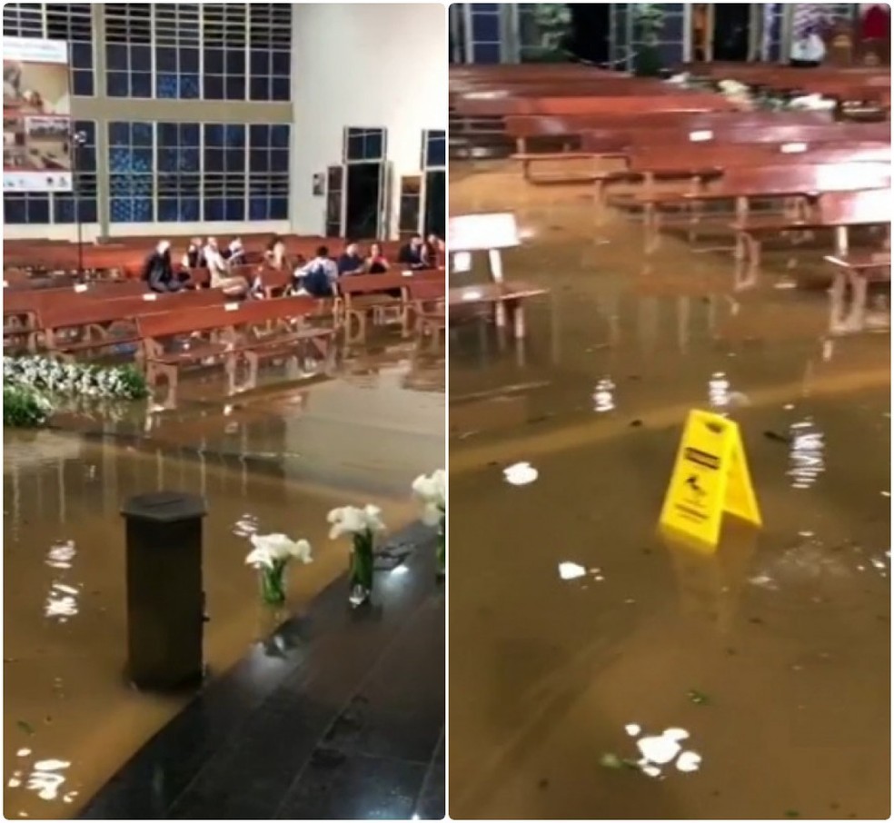 A situação inusitada foi registrada pelos convidados e ganhou as redes sociais. Imagens do casamento sendo realizado em meio ao temporal ganharam a internet. Mas a aventura começou mesmo antes da noiva entrar na igreja.