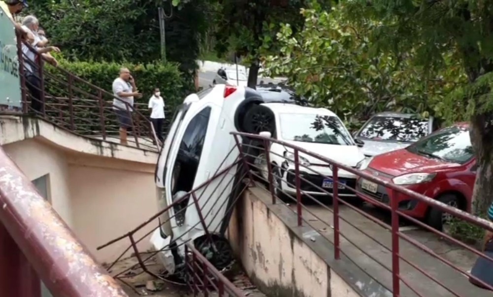 No local ocorreu uma batida envolvendo pelo menos quatro veículos, um deles caiu dentro de uma clínica médica. As vítimas receberam atendimento das equipes de resgate e foram levadas para o pronto socorro.