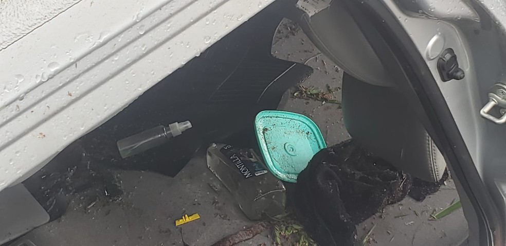 Uma garrafa de bebida alcoólica foi encontrada dentro do veículo. O condutor fugiu.