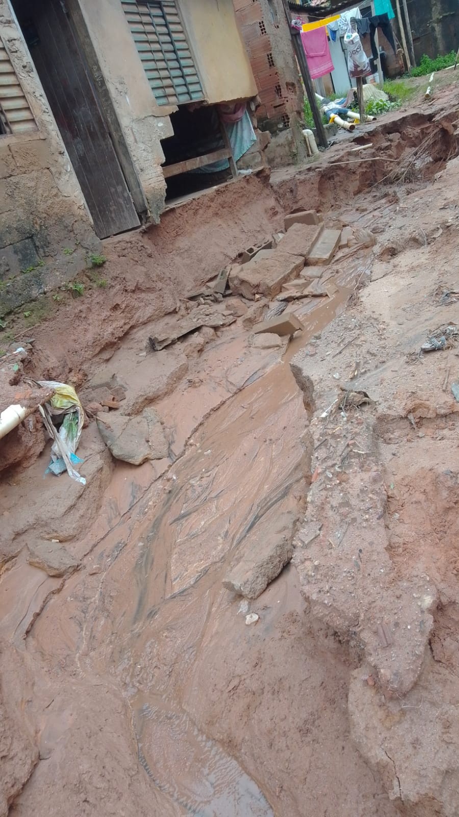 A casa danificada fica em um lote, localizado em frente a Escola Municipal Padre Estevam Viparelli, no Barro Preto. No mesmo lote existem outras casas. A enxurrada causou também erosão em toda extensão do lote.