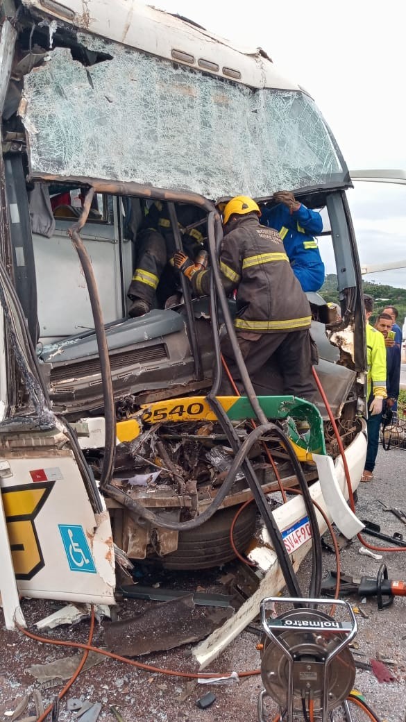 Um ônibus de viagem bateu contra um caminhão na BR-040, em Esmeraldas, na Região Metropolitana de Belo Horizonte, no início da manhã desta terça-feira (4). Pelo menos quatro pessoas ficaram feridas.